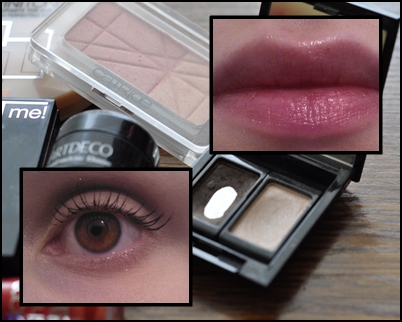 Un šādi tas viss izskatās. Pavisam vienkāršs ikdienas grimms. Lūpu spīduma krāsu ikdienā notušēju ar Nivea balzāma palīdzību, lai tā nav tik spilgta. Acīm pēc iespējas dabiskāku izskatu – tumšās ēnas vietā, kur plakstiņš lokas, visur citur – gaišās. Un skropstu tuša.