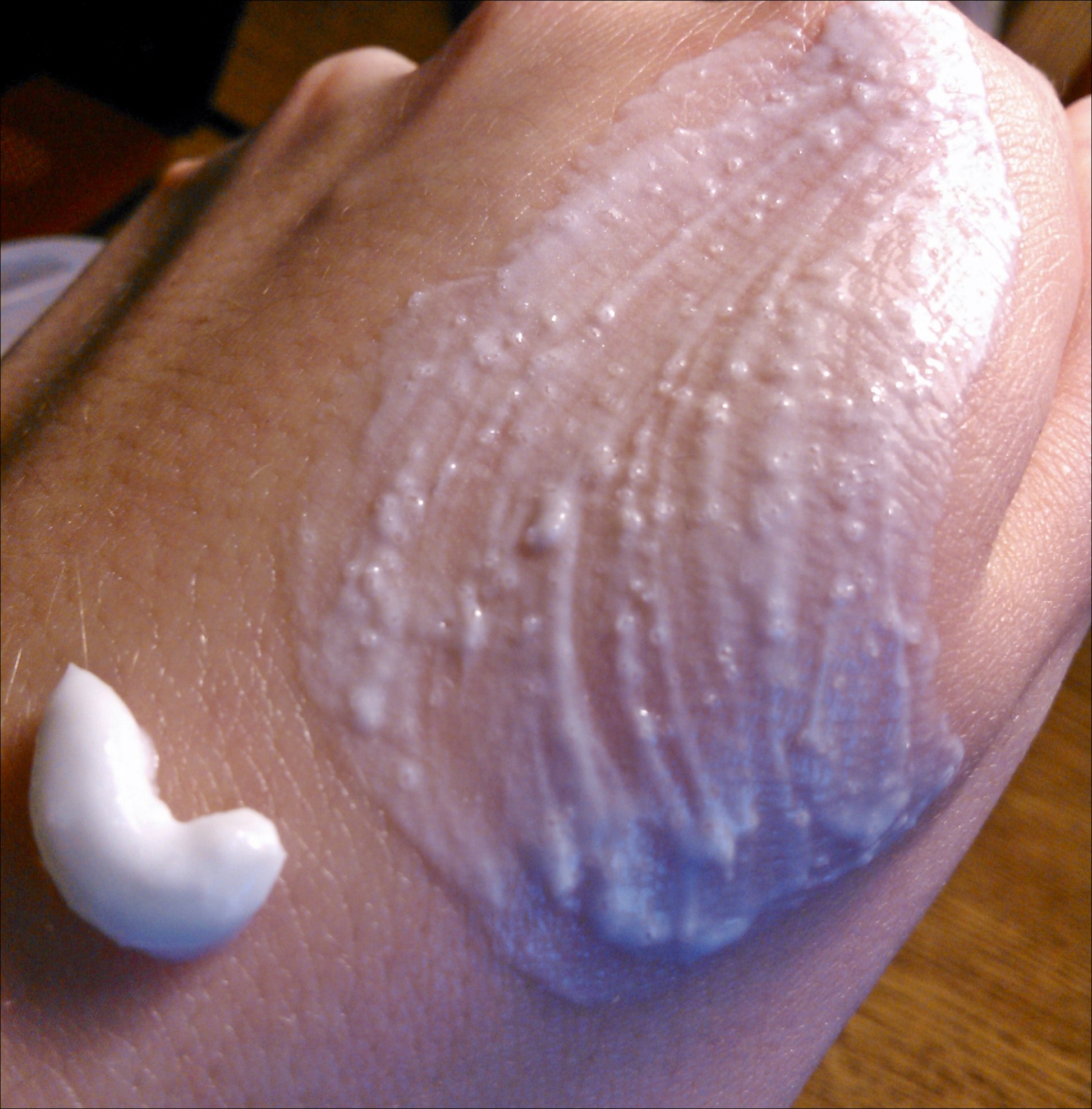 Uz ādas tas izskatās šādi – krēmīgs ar mazām granuliņām. Šajā bildē pat mazliet izskatās pēc dimantiem. 😀