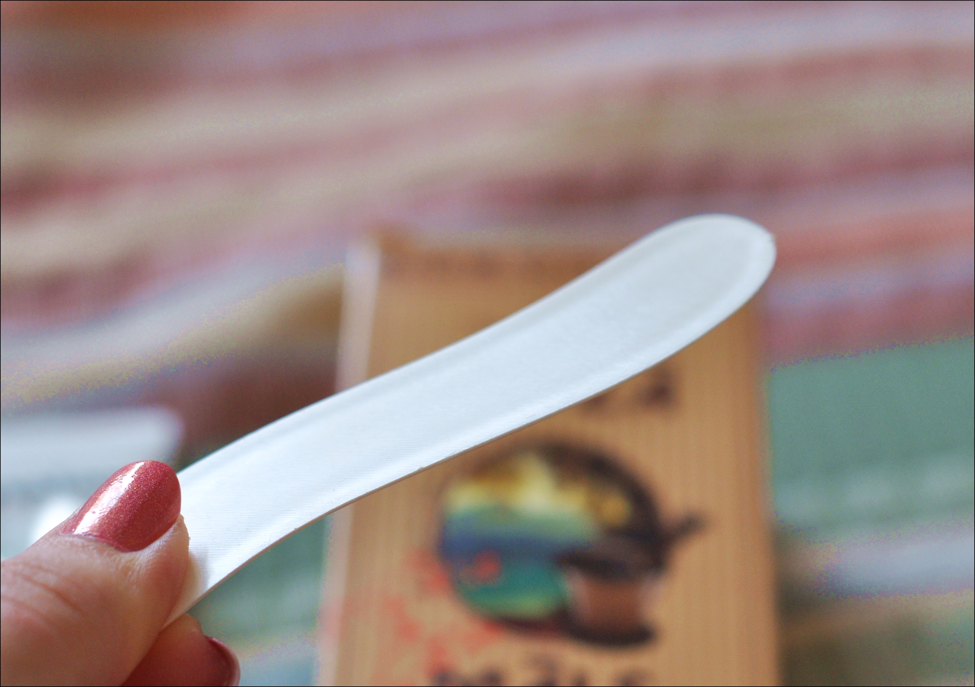 Kārtējo reizi klāju uz sejas mālu masku un iedomājos, ka to taču var darīt ne tikai ar pirkstiem, aiz kuru nagiem viss parasti saķeras un vispār pē. Atradu mājās šādu lāpstiņu. Perfektais izmērs + visu uz sejas var izlīdzināt perfekti. Nav vairs problēmu ar mālu maskas kasīšanu ārā no trauciņa.