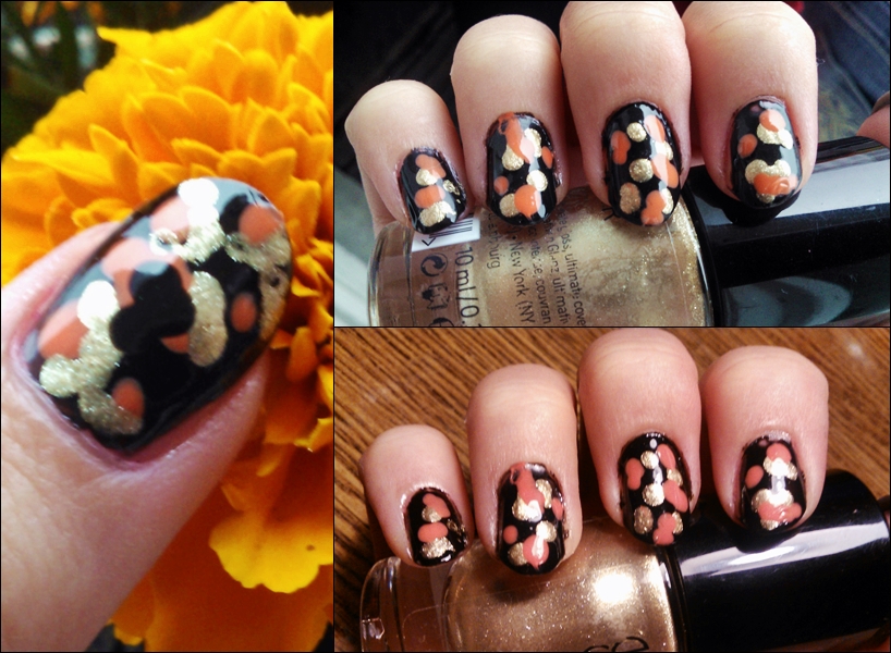 Šodien mazliet kamuflāžas elementu, taču vispār iedvesmojos no leoparda raksta nagiem/manikīra… Redz kas beigās sanāca.