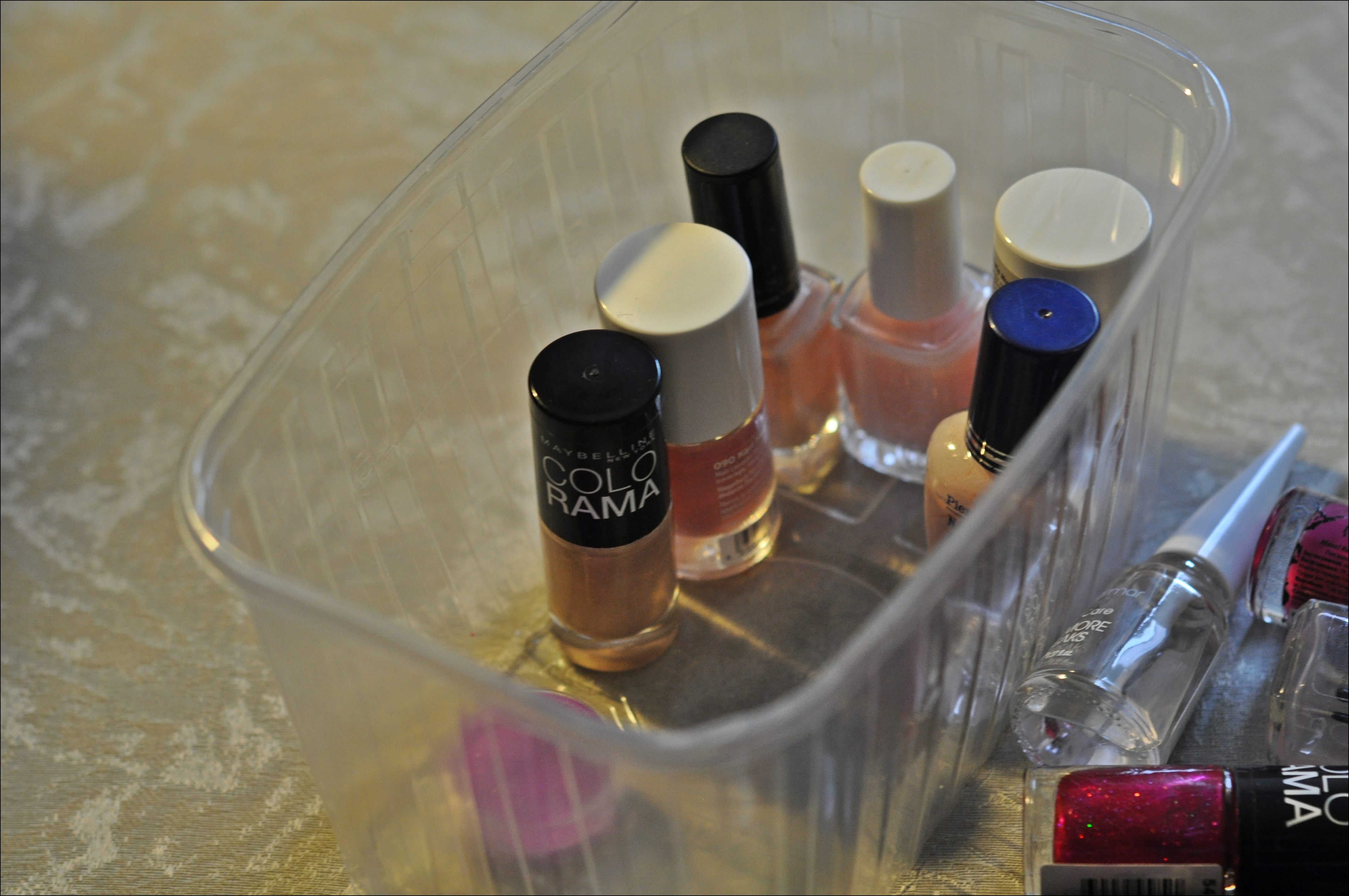 Es agrāk nagu lakas glabāju zemā pītajā groziņā, taču tagad vienkāršā kastītē, jo groziņā vairs nelīda 😀