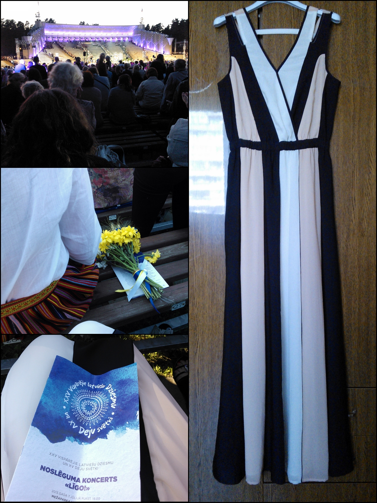 Pabiju arī Dziesmu svētku noslēguma koncertā – bildē redzama kleita, kas man bija mugurā. Šī gada repertuārs man galīgi negāja pie sirds – pievienojos tiem kritiķiem, kas saka, ka tas tomēr izgāzies šogad. Devu sev solījumu, ka uz nākošajiem atkal tur būšu kā dalībnieks, jo tas ir daudz foršāk, nekā noskatīties uz visu no malas.