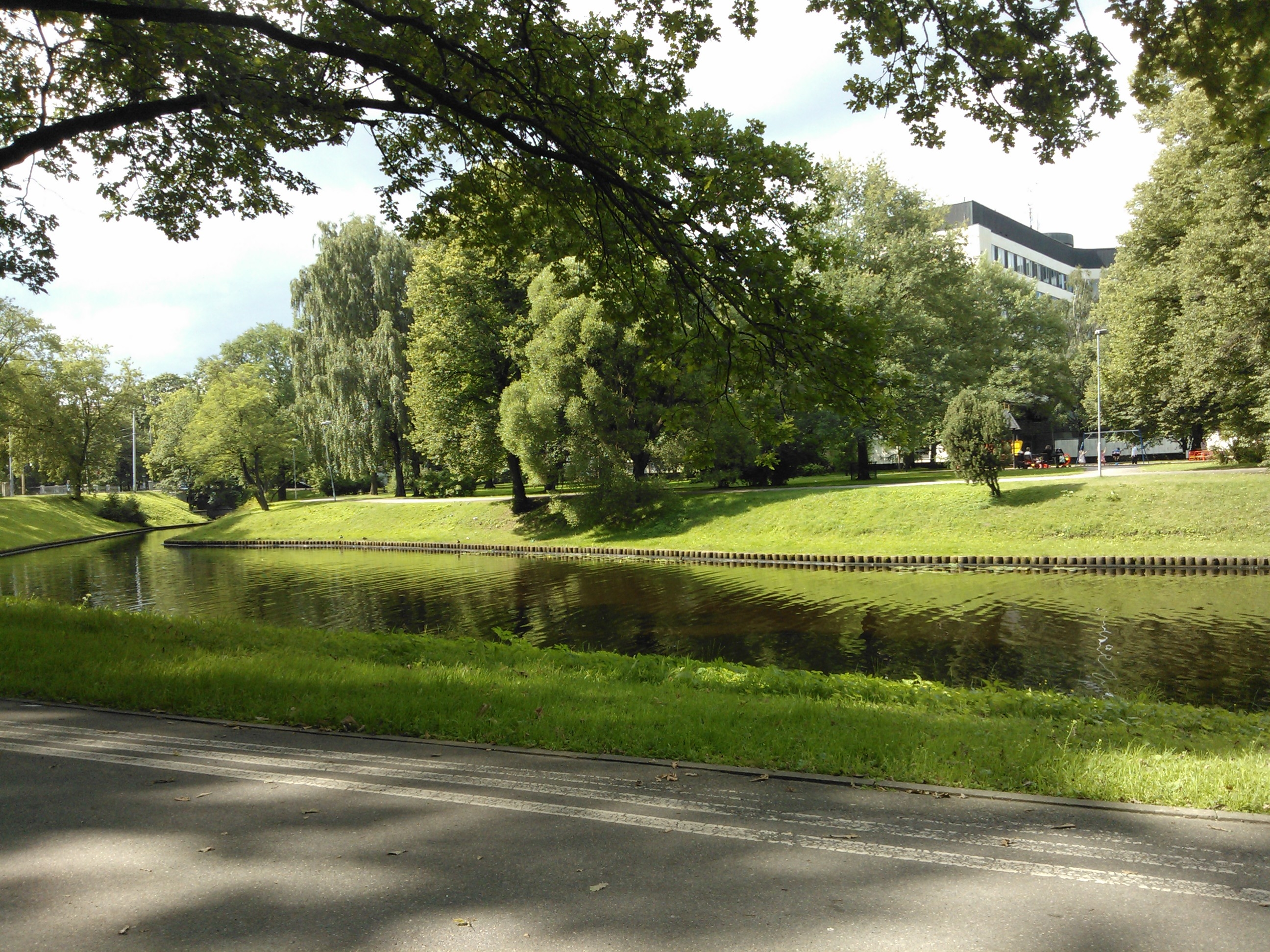Baudīju arī dabu un beidzot tiku pie sauļošanās. Vismaz pāris reizes vasarā vajag aizbraukt pie dabas, bet darba dienā der arī Rīgas zaļie parciņi. Kā arī – šo skatu gribu saglabāt atmiņā visu ziemu. Viss zaļš un dzīvs. Jau baidos no tā brīža, kad tā vairs nebūs uz vairākiem mēnešiem. 😦