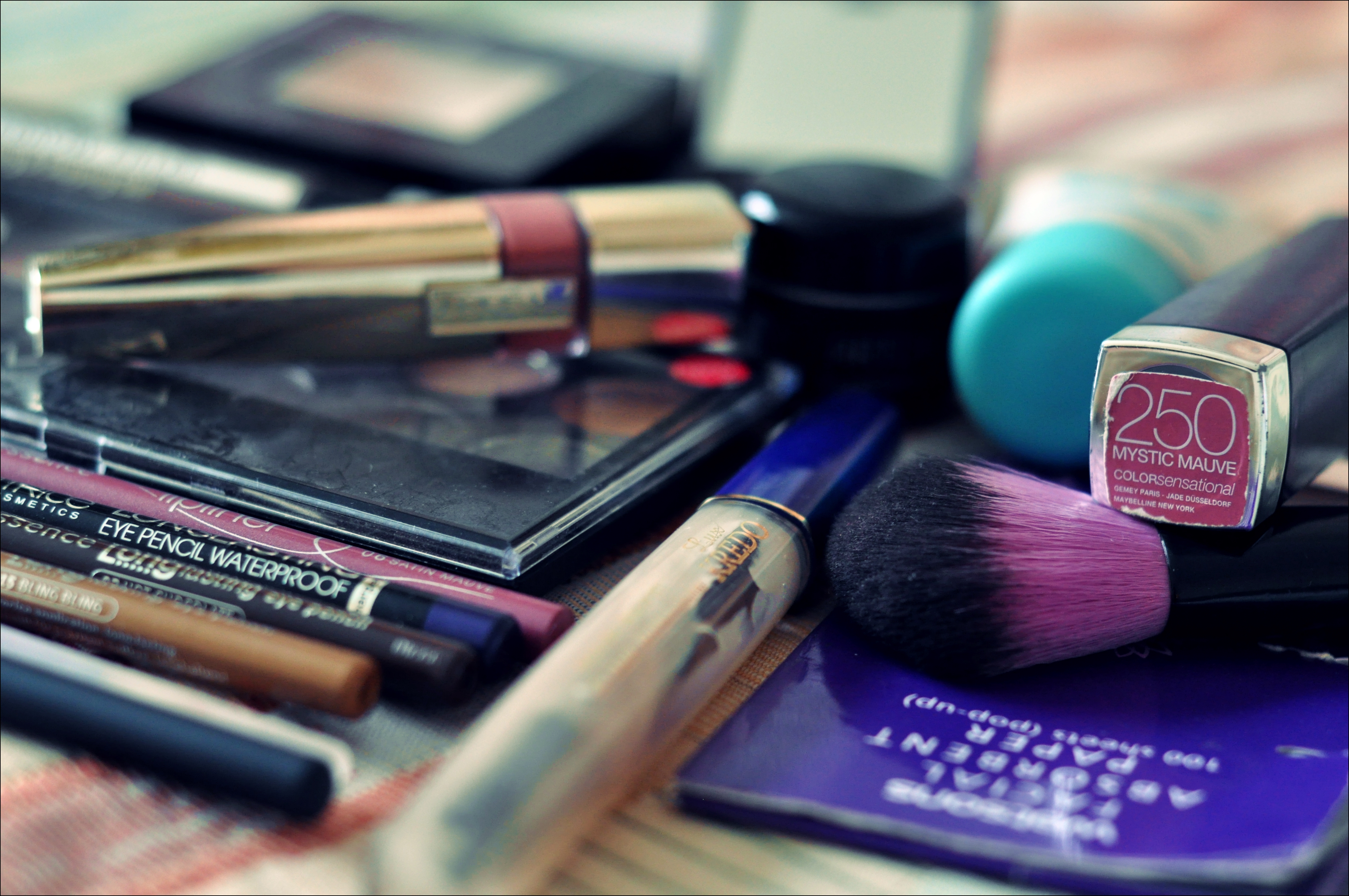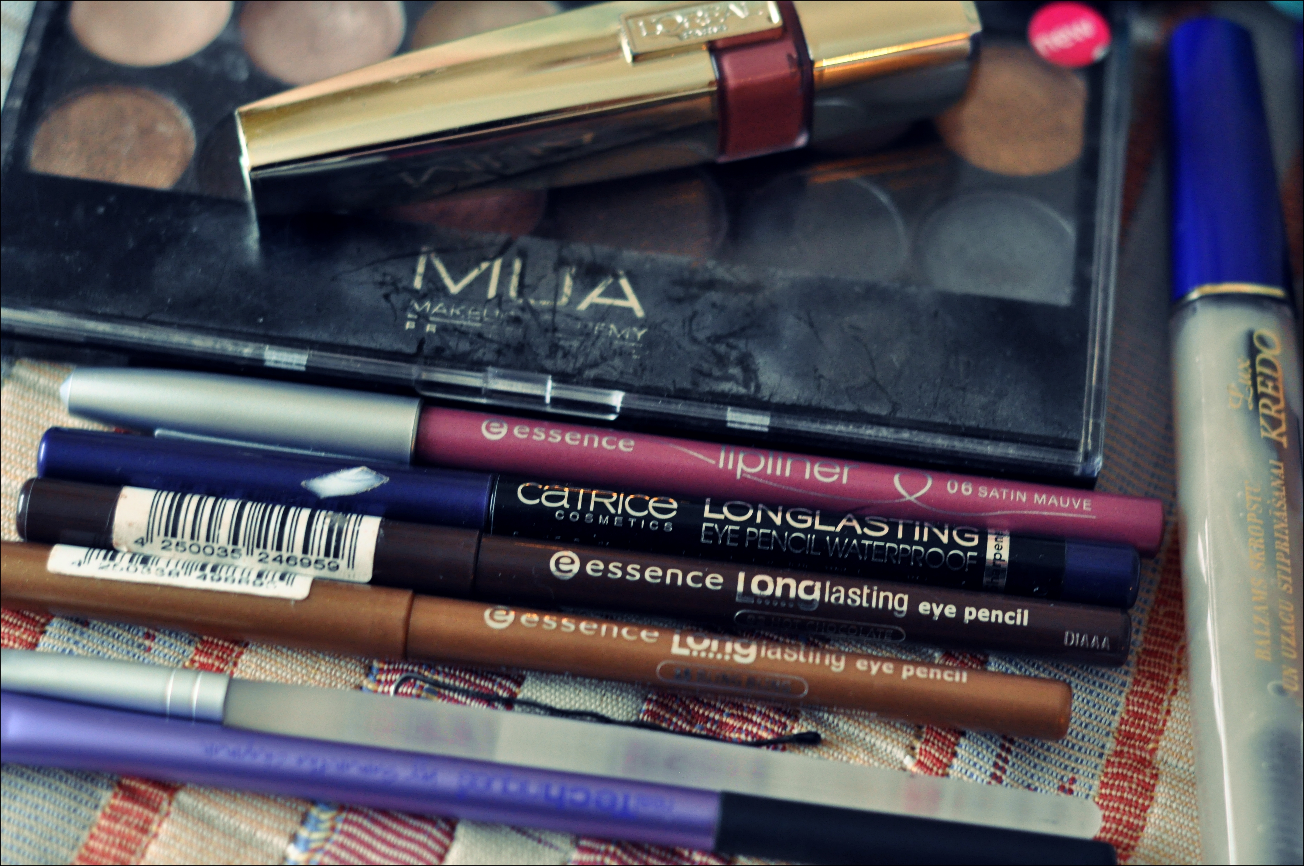 Man no rītiem patīk pagulēt, tāpēc dienās, kad dodos uz darbu, acis krāsoju darbā. 🙂 Tā tad līdzi ir acu zīmulis, laineris (izvēlos vienu no tiem pēc noskaņojuma), skropstu tuša un kāds lūpu produkts, Un protams arī nagu laka, kas tajā dienā uz nagiem. 😉